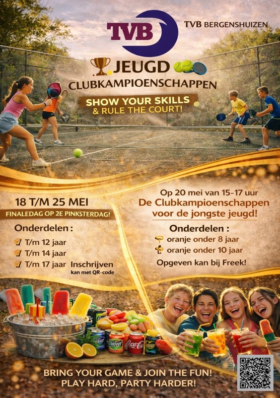 In deze week zijn ook de clubkampioenschappen padel voor de jeugd! Grotere jeugd moet zich ook inschrijven via de Knltb en de oranje jeugd mag zich opgeven bij trainer Freek.