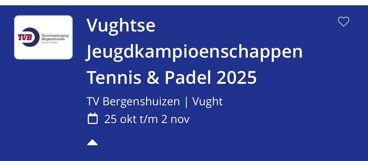 Van 25 oktober tot en met 2 november worden de Vughtse Jeugdkampioenschappen gespeeld bij TVB. In zowel tennis als padel strijdt de jeugd van Vught om de lokale titels.